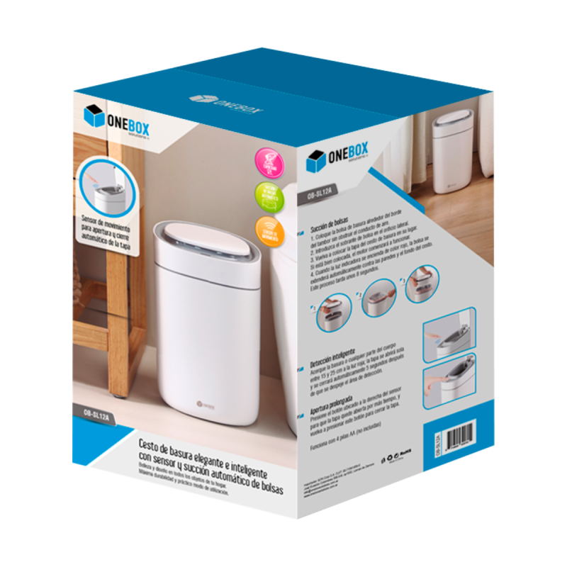 CESTO DE BASURA ELEGANTE E INTELIGENTE CON SENSOR Y SUCCIÓN 12L OB-SL12A