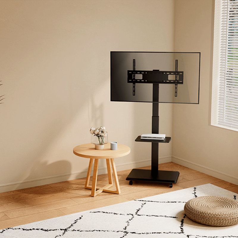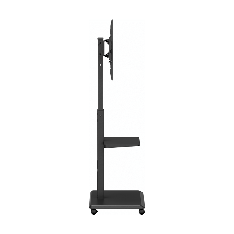 Pueden colocarse un DVD y una pantalla. Incluye organizador de cables. Este robusto y elegante rack móvil está diseñado para soportar televisores de 37 a 75", ofreciendo una solución versátil y ajustable para cualquier espacio. Con ruedas giratorias para un fácil movimiento y una estructura sólida para una estabilidad óptima, este rack es ideal para presentaciones, oficinas o el hogar. Incluye una repisa para dispositivos adicionales y una base amplia para una mayor seguridad.
