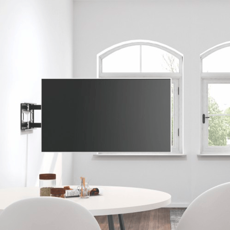 Este soporte de TV móvil es ideal para televisores de 43" a 80" extensible hasta 101.5cm. Fabricado con materiales robustos, garantiza la seguridad y estabilidad de tu televisor. Su diseño delgado y minimalista permite un montaje discreto y elegante en la pared, optimizando el espacio en tu hogar. Fácil de instalar, perfecto para quienes buscan una solución sencilla y efectiva para montar su televisor.
