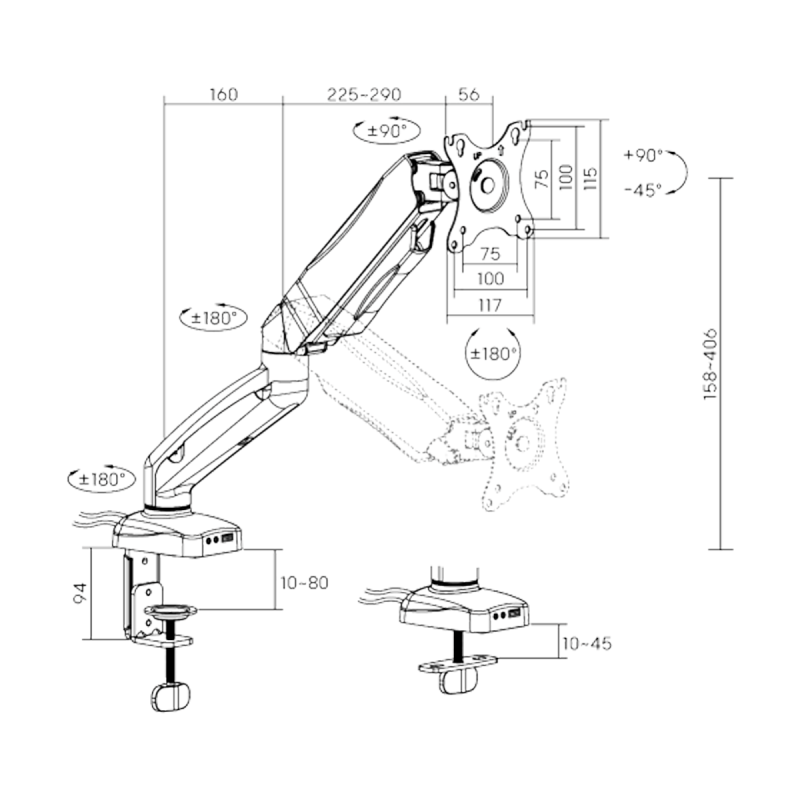 Este soporte para escritorio está diseñado para facilitar tu vida diaria. Con su ángulo de rotación vertical y horizontal, podrás ajustar fácilmente el ángulo de posición para que tu monitor esté a la distancia deseada.