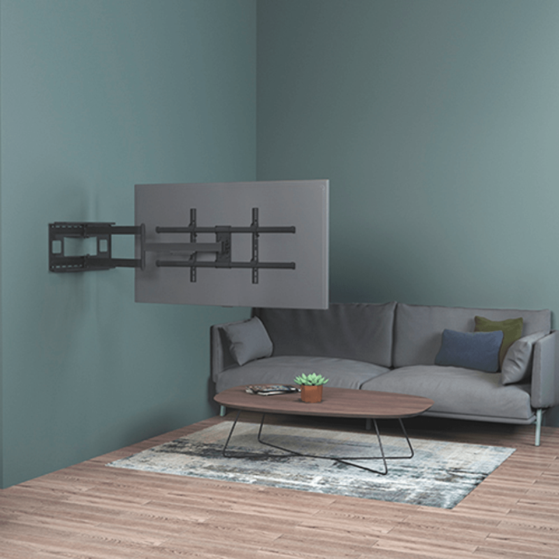 Este soporte de TV móvil es ideal para televisores de 43" a 80" extensible hasta 101.5cm. Fabricado con materiales robustos, garantiza la seguridad y estabilidad de tu televisor. Su diseño delgado y minimalista permite un montaje discreto y elegante en la pared, optimizando el espacio en tu hogar. Fácil de instalar, perfecto para quienes buscan una solución sencilla y efectiva para montar su televisor.